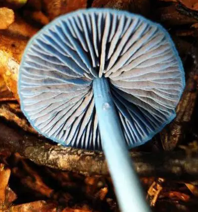 粉褶菌属的典型特征,顾名思义,就是菌褶都呈粉红色。“蓝瘦香菇”们也不例外,只是他们全身包括菌柄在内都呈蓝色,这使他们区别于其他同类,格外吸引人们的目光。